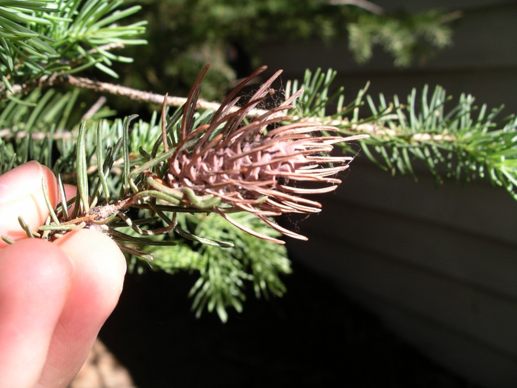 Cooley spruce gall adelgids are aphid like insects that cause new branch growth to form galls. Preventative sprays can be made in the fall or in the spring before the galls form. Cooley spruce gall adelgids won’t kill a tree directly but can cause the tree to be unsightly.