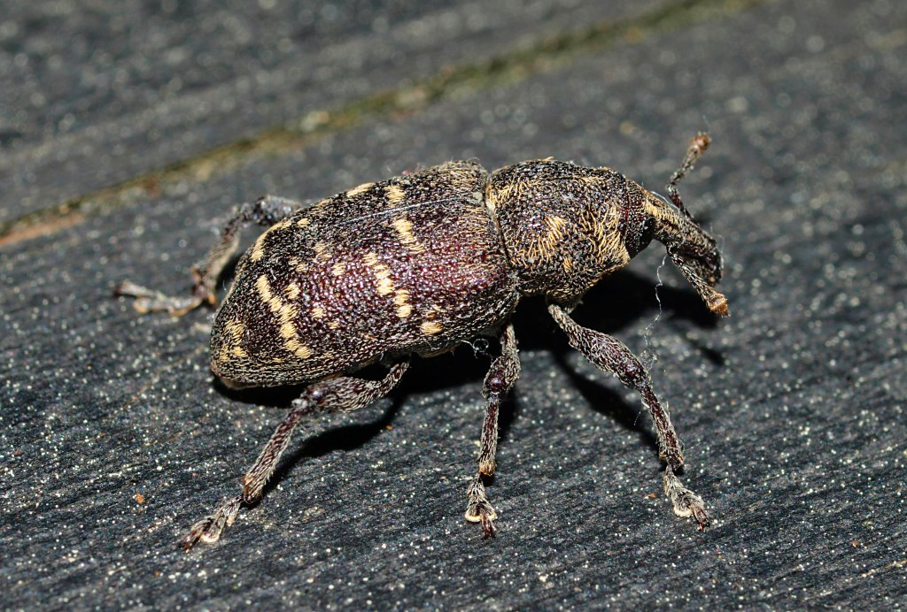White pine weevils affect spruce trees under 35ft in height. They lay their eggs on the terminal leader of spruce trees in early spring. The larvae feed under the surface eventually girdling the terminal and killing it. The tree will survive; however, repeated attacks will stress the tree and cause misshapen growth. White pine weevils can be prevented by spraying in the spring.